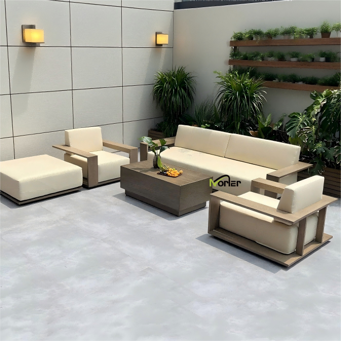 5. Καναπές εξωτερικού χώρου Teak: Κατασκευασμένος από φυσικό ξύλο τικ ιδιαίτερα ανθεκτικό στις καιρικές συνθήκες, αυτός ο καναπές διαθέτει λεπτόκοκκο κόκκο, υψηλή σταθερότητα και αναπτύσσει μια πιο πολυτελή αίσθηση με τη χρήση, καθιστώντας τον μια κλασική επιλογή για τη δημιουργία ενός μπαλκονιού σε στιλ θερέτρου υψηλής ποιότητας.