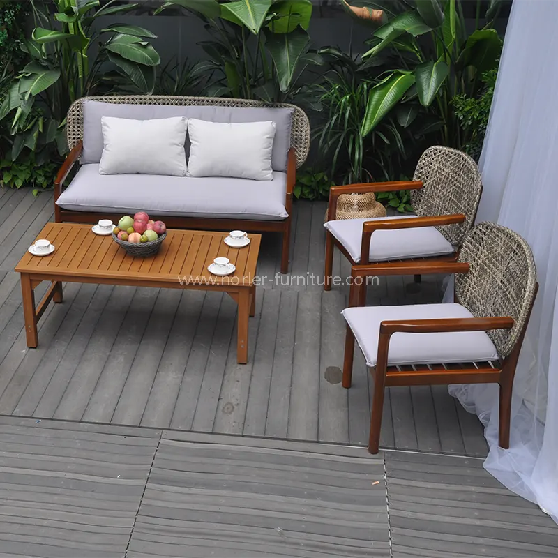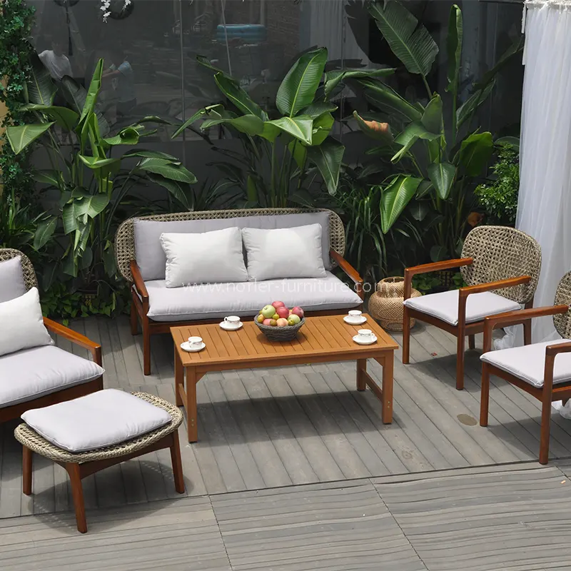 Outdoor Weather Resistant Teak Wood Rattan Sofa Set